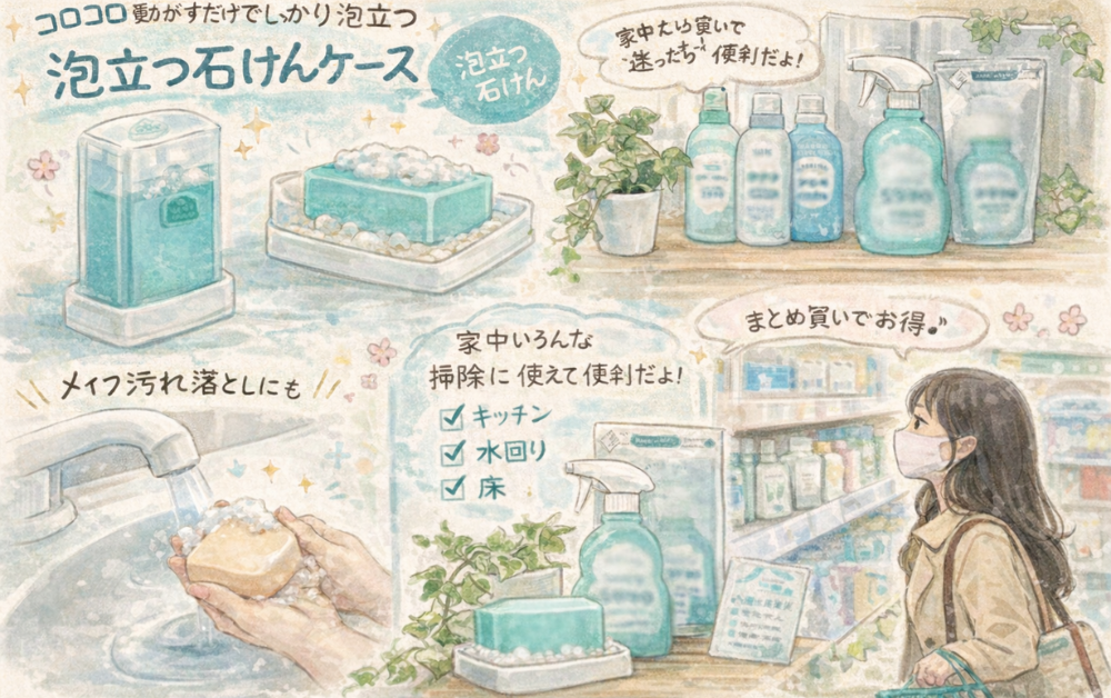 掃除用品を継続して使う場合、まとめ買いを上手に利用することでコストを抑えやすくなります。ウタマロクリーナーの詰め替えは比較的コンパクトなサイズなので、いくつかまとめて保管しておくことも可能です。通販では複数本セットの商品が販売されていることがあり、1本あたりの価格が抑えられる場合があります。また、店舗でも複数購入しておくことで、買い忘れを防ぐことができます。掃除用品は突然なくなることがあるため、予備を用意しておくと安心です。ただし、保管場所を確保しておくことも大切です。無理のない範囲でストックしておくことで、日常の掃除をスムーズに続けやすくなります。